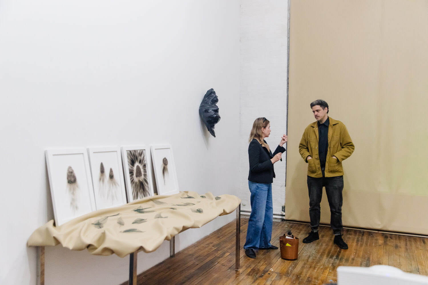 Felipe de Ávila Franco with a visitor, Spring Open Studios 2023. Photo by Tess Mayer.