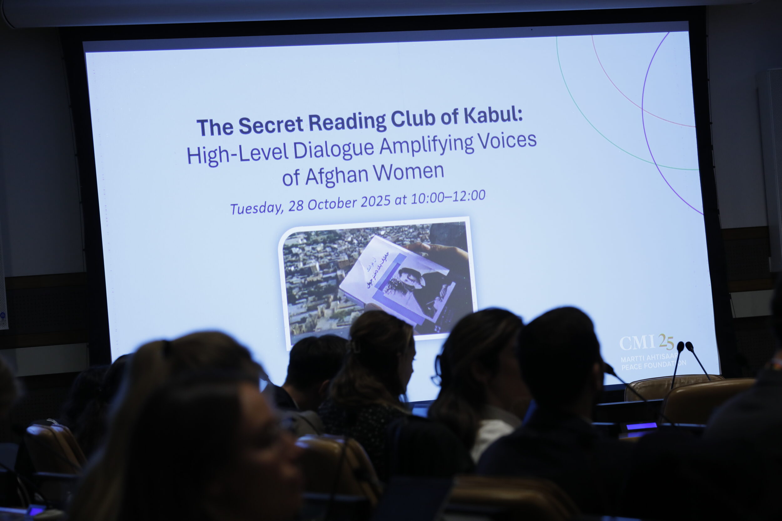 The widely praised event The Secret Reading Club of Kabul: High-Level Dialogue Amplifying Voices of Afghan Women brought together representatives from governments, international organisations and civil society. The event was organised by CMI, the Finnish Ministry for Foreign Affairs and Finland’s Permanent Mission to the UN. The opening address was given by Finland’s UN Ambassador Elina Kalkku, with framing remarks by Kirsi Madi, Deputy Executive Director of UN Women, and Khaled Khiari, UN Assistant Secretary-General (DPPA). The panel, moderated by CMI’s Elisa Tarnaala, featured the film’s directors Hirvonen and Adil, as well as Nahid Shahalimi, founder of the Afghan human rights organisation We The Women.